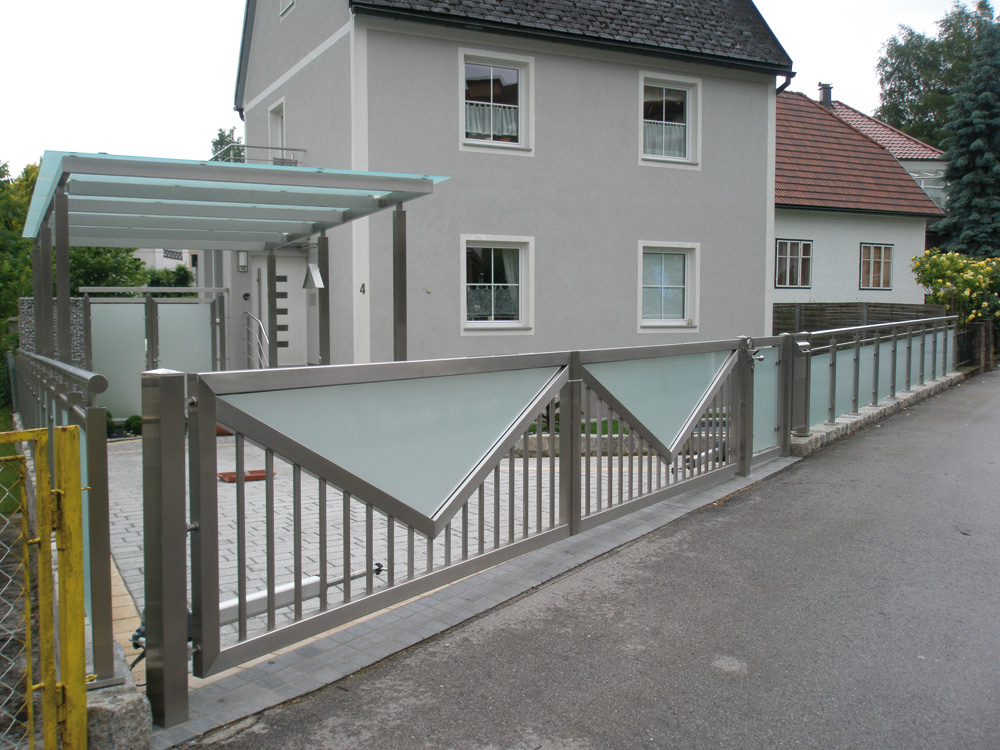 – Stahlkonstruktionen wie Stiegen, Vordächer oder Wintergärten – Maßanfertigungen aus Edelstahl wie Balkone, Geländer oder Zäune – Glas-/ und Portalbauten wie Carports oder Vordächer